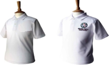 White polo shirt (with or without school logo). Shirt must have a collar e.g. no t-shirts We sell iron on logos at the school office. |