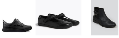 Black shoes, black trainers or black boots. Footwear should be flat e.g. no heels and no heelies. Footwear must have a back and closed toes. Boots should be flat and ankle height.