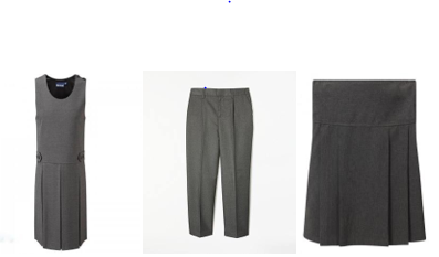 Plain grey or black trousers, skirt or pinafore dress, shorts or leggings. Trousers/shorts should be a tailored fit e.g. no jogging bottoms or sports shorts(except as part of PE kit). Skirts and dresses should be of an appropriate length. Black jeans are not permitted. |